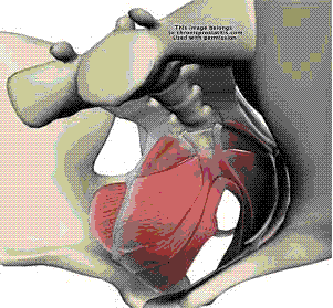 I thought that this would be a great opportunity to show an image of the pelvic floor for you to visualise what things really look like "down there." Remember that each sex looks a little different, but this image below is a fantastic one viewed from above and looking into the pelvic cavity. You will notice the pubic bone at the fore of the image and the sacrum/tailbone at the rear. Note the "sling-like" appearance of the pelvic floor musculature and now understand how, if toned and strong, offers support to your back, pelvis and pelvic organs in an upward direction.